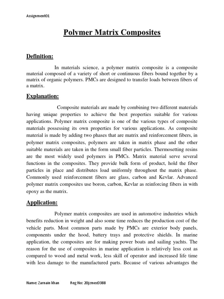 introduction to the polymer matrix composite, in this Assignment i explain about