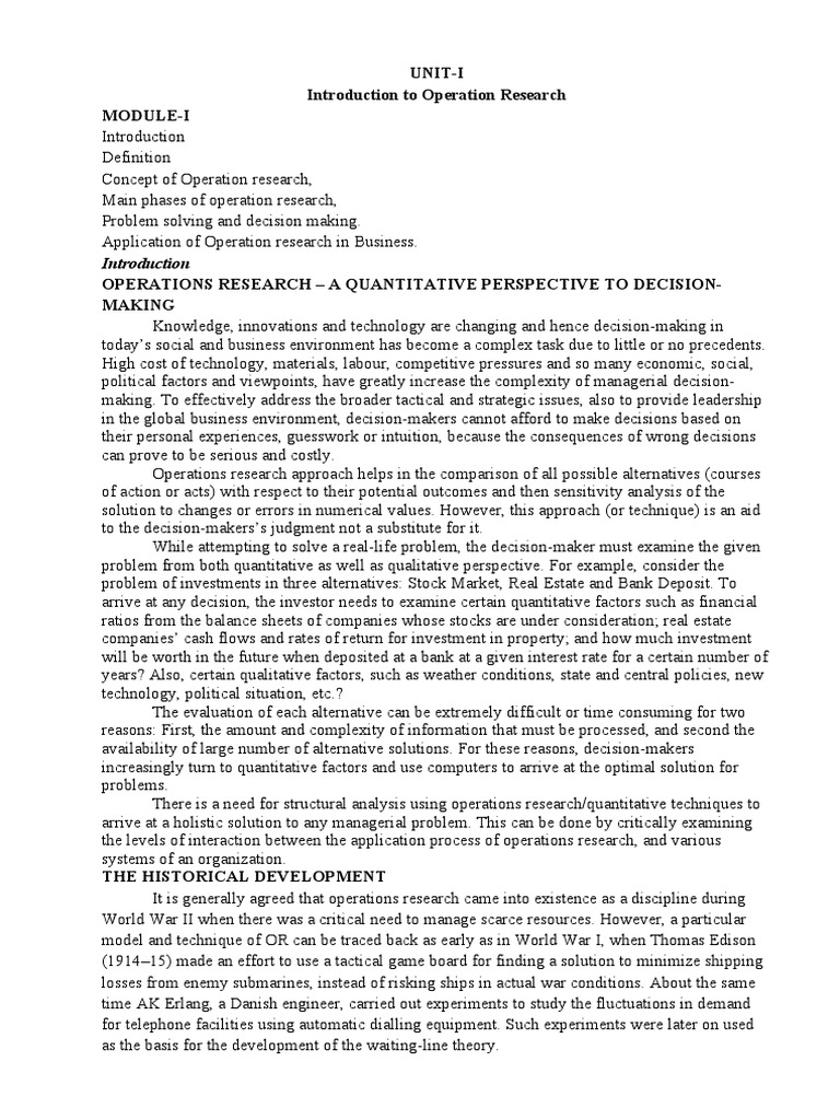OPERATIONS RESEARCH – A QUANTITATIVE PERSPECTIVE TO DECISION-