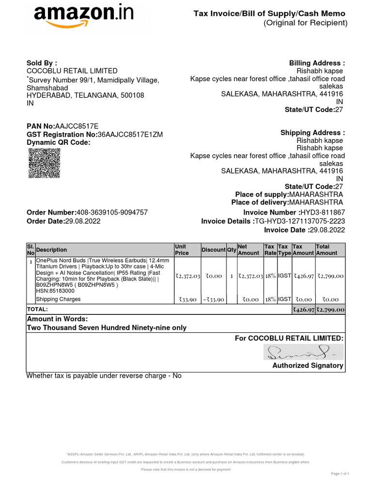 Order Number:408-3639105-9094757 Invoice Number :HYD3-811867