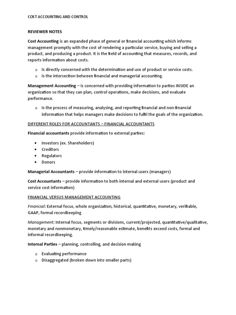 o Is directly concerned with the determination and use of product or service costs.