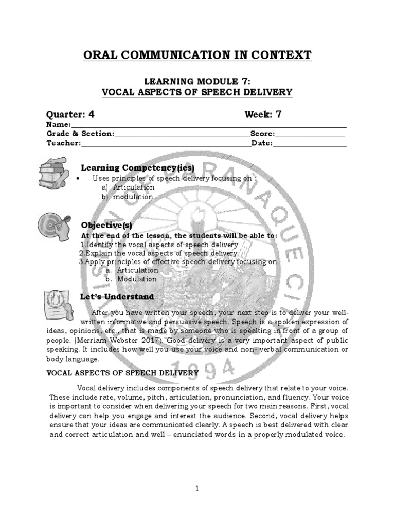 VOCAL ASPECTS OF SPEECH DELIVERY