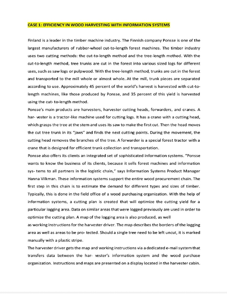 CASE 1: EFFICIENCYIN WOOD HARVESTING WITH INFORMATIONSYSTEMS