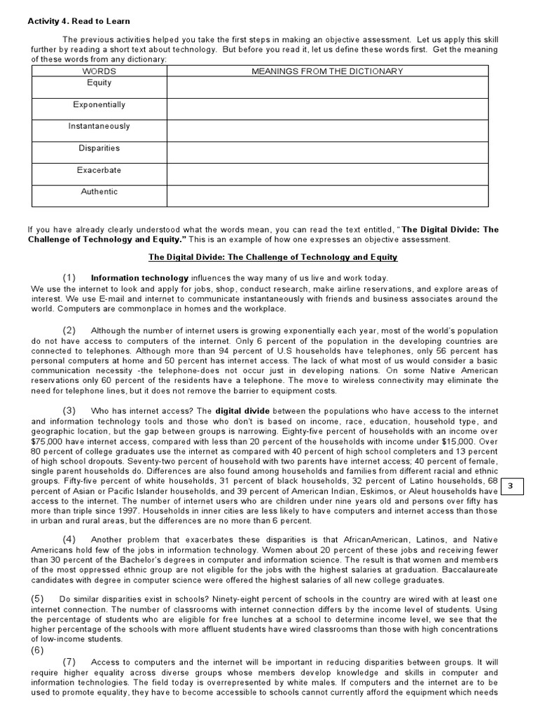 Challenge of Technology and Equity.” This is an example of how one expresses an objective assessment.