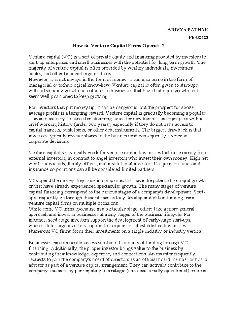 average profits is a tempting reward. Venture capital is gradually becoming a popular