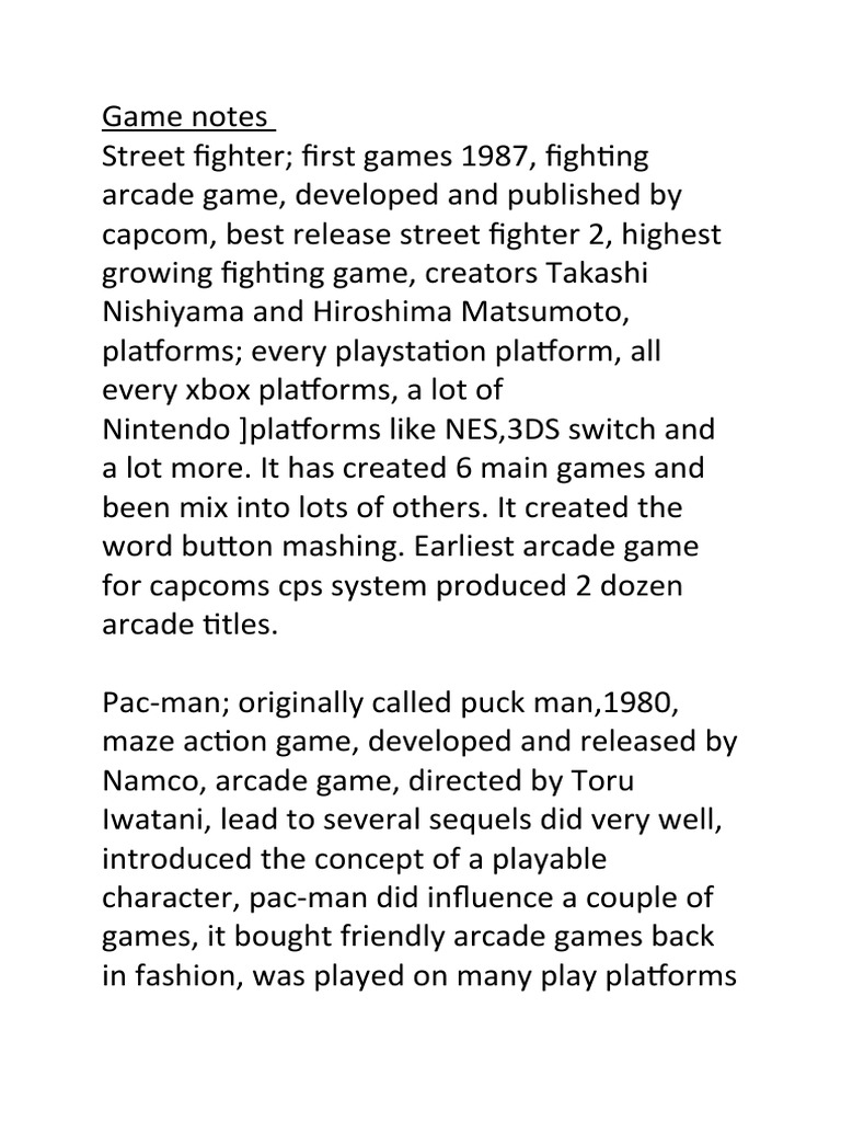 Game notes