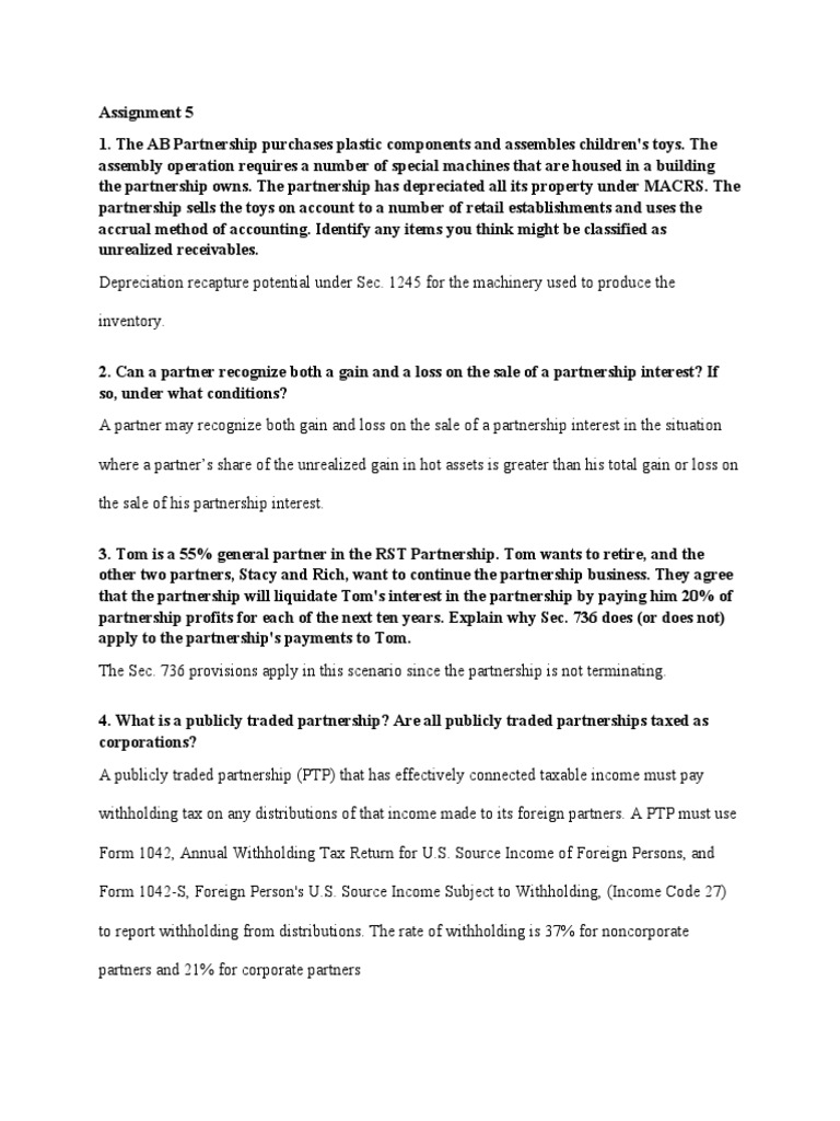 3. Tom is a 55% general partner in the RST Partnership. Tom wants to retire, and the