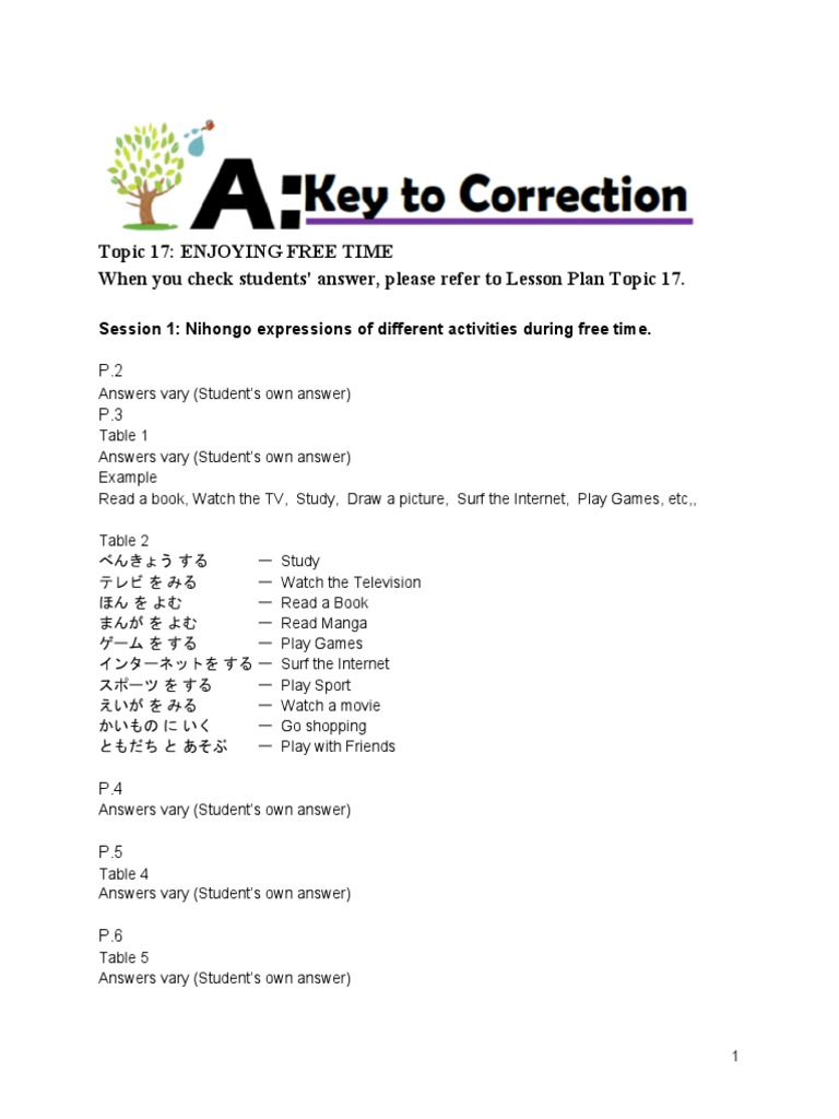 Session 1: Nihongo expressions of different activities during free time.