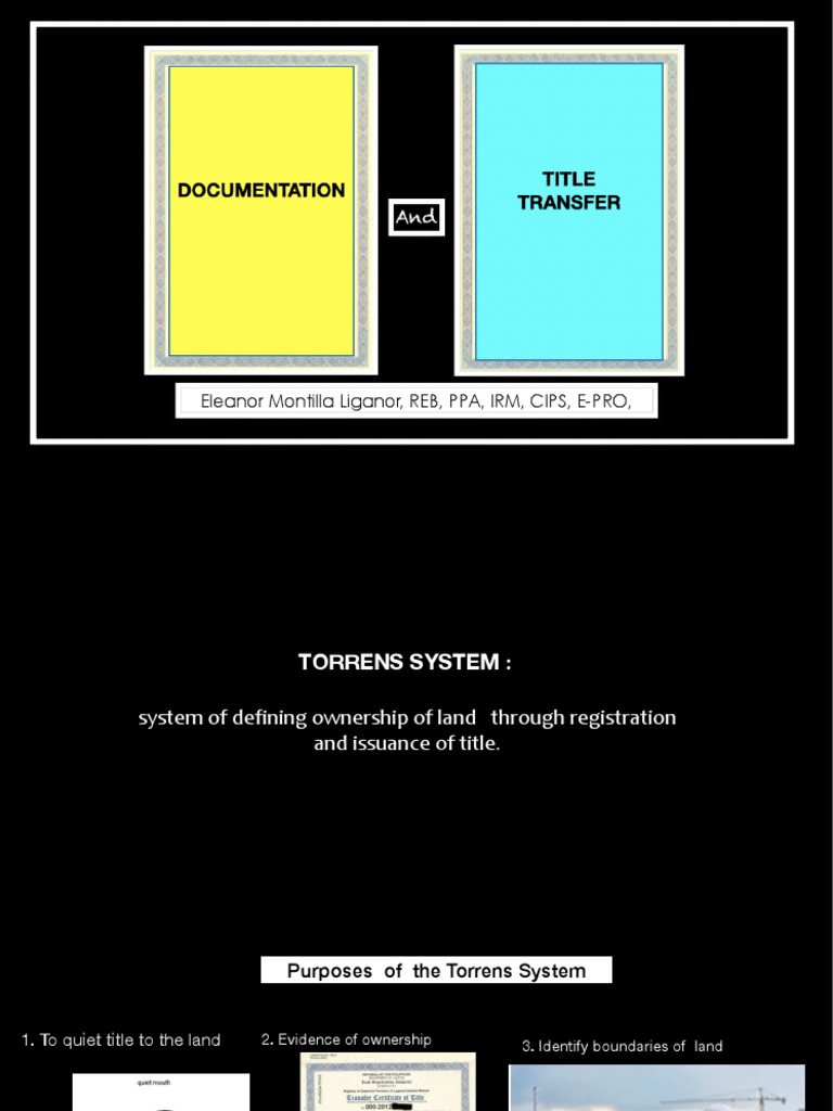 1. To quiet title to the land 2. Evidence of ownership 3. Identify boundaries of land