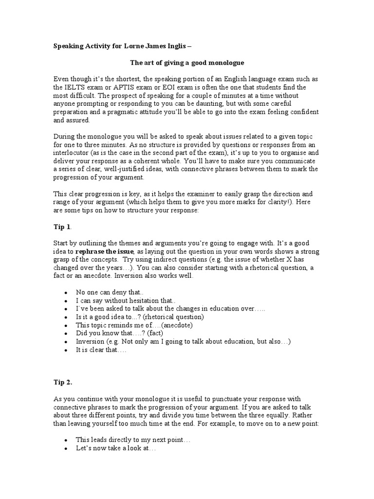 interlocutor (as is the case in the second part of the exam), it’s up to you to organise and