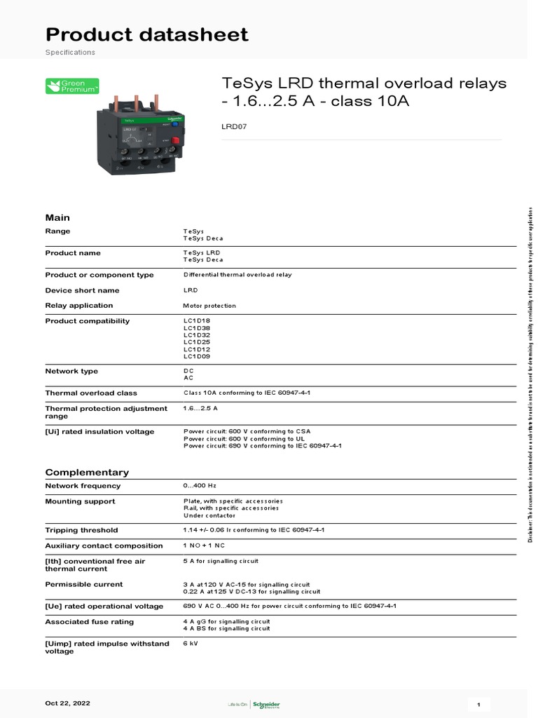 Thermal overload class Class 10A conforming to IEC 60947-4-1