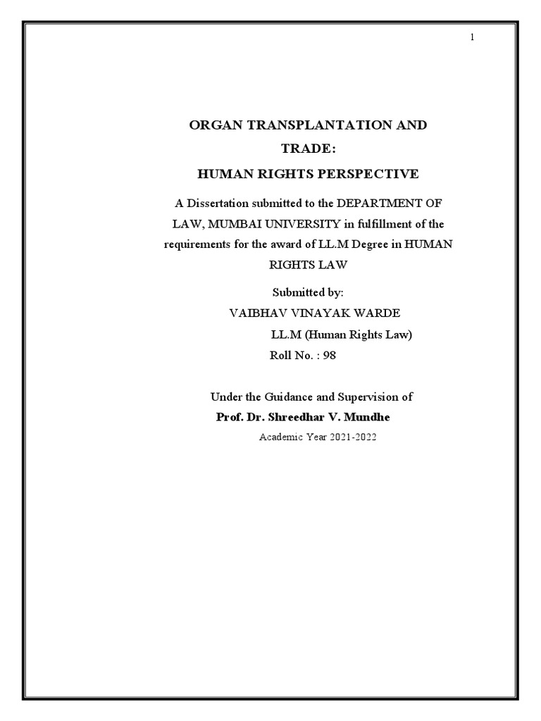 of Law, Mumbai University, in fulfillment of the requirement for the