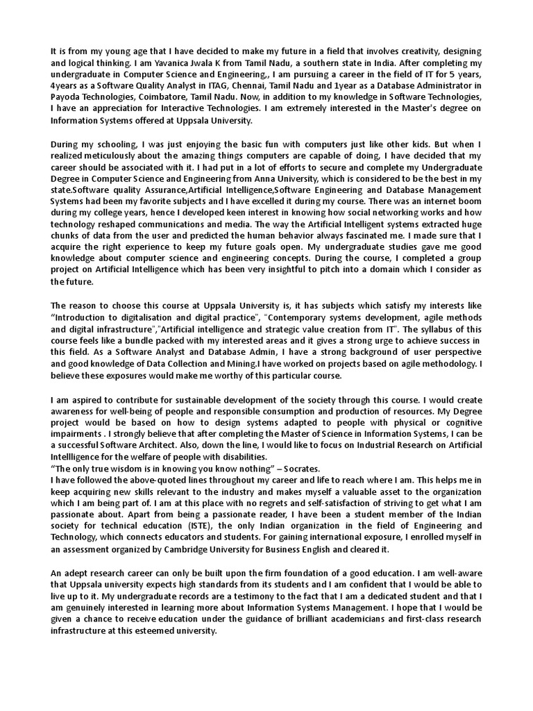 that Uppsala university expects high standards from its students and I am confident that I would be able to