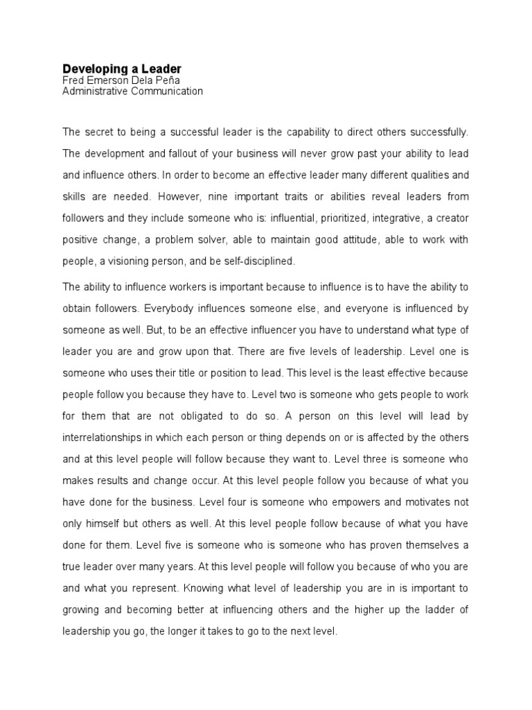 make themselves to be. In order to be a leader to must exhibit: honesty, fulfillment,