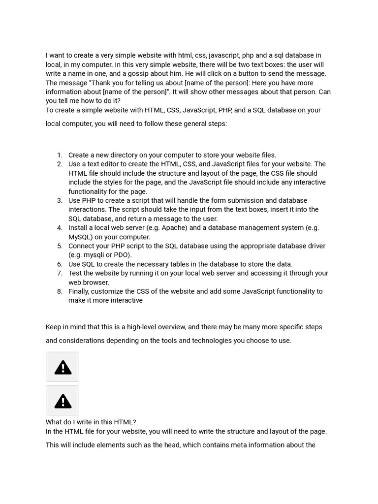 To create a simple website with HTML, CSS, JavaScript, PHP, and a SQL database on your