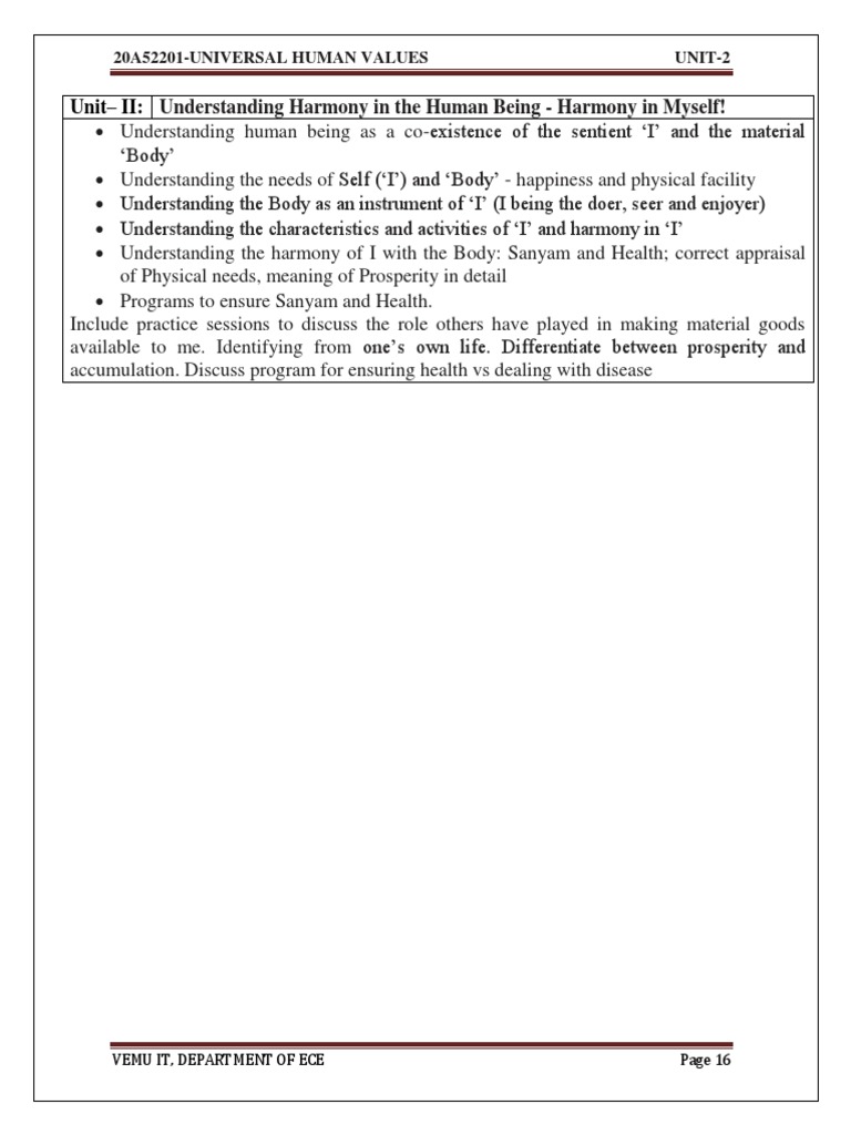 Unit– II: Understanding Harmony in the Human Being - Harmony in Myself!