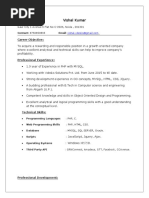 Career Objective:Seeking an entry-level position in Information Technology especially Software Developer, where I can apply my knowledge of Software & Programming. I intend to contribute positively towards the growth and prosperity of the company. Qualification: Bachelor of Engineering in Information Technology from R.C.E.R.T., Chandrapur in 2009 with an average of 64.80% Diploma in Information Technology from MSBTE in 2006 with 62.75% SSC from Sarvoday Vidyalaya Sindewahi, Dist-Chandrapur in 2002 with 62.88% Software Skills: Database Languages : RDBMS, ORACLE, DB2, VSAM : SQL, PL/SQL, Core JAVA, Advanced JAVA, Data Structure, C++, Oracle (9i), JCL, COBOL, SERVLET, JSP, STRUTS and CICS Web Technology : HTML, XML, JSP OS : Windows (2000/XP/2007), MVS, Zos Certificate: Certification Course in Mainframe Application Programming from Maplesesm Institute, Pune Certificate in Advance JAVA from Seed InfoTech, Pune (A+). Certificate in Core JAVA from Seed InfoTech, Pune (A+). Seminar: Virtual Private Network Academic Project 1: Project Name Team Size Duration Language Database Platform E-Ticket Booking 3 4 Months Java, Servlet, Jsp, Html Oracle (9i) Windows