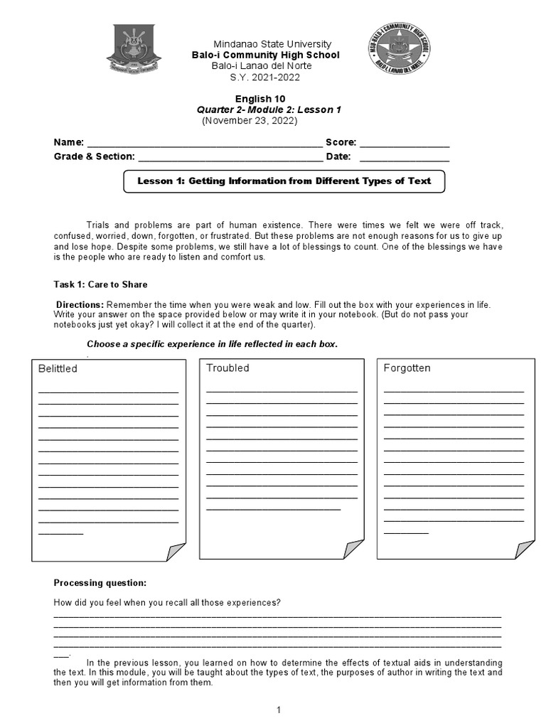 the text. In this module, you will be taught about the types of text, the purposes of author in writing the text and