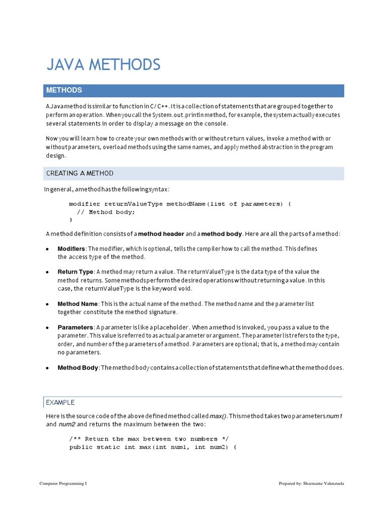 Computer Programming I Prepared by: Sharmaine Valenzuela