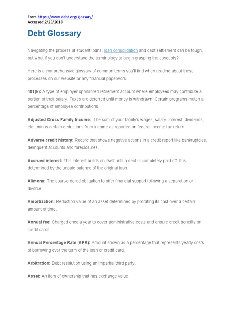 Debt consolidation: The combination of multiple debts into a single debt with one interest rate.