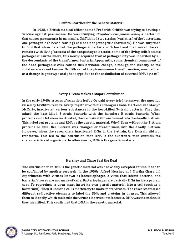 raised by Griffith’s results. Avery, together with his colleagues Colin MacLeod and Maclyn