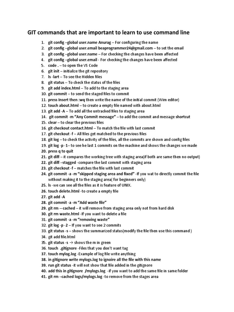 GIT commands that are important to learn to use command line