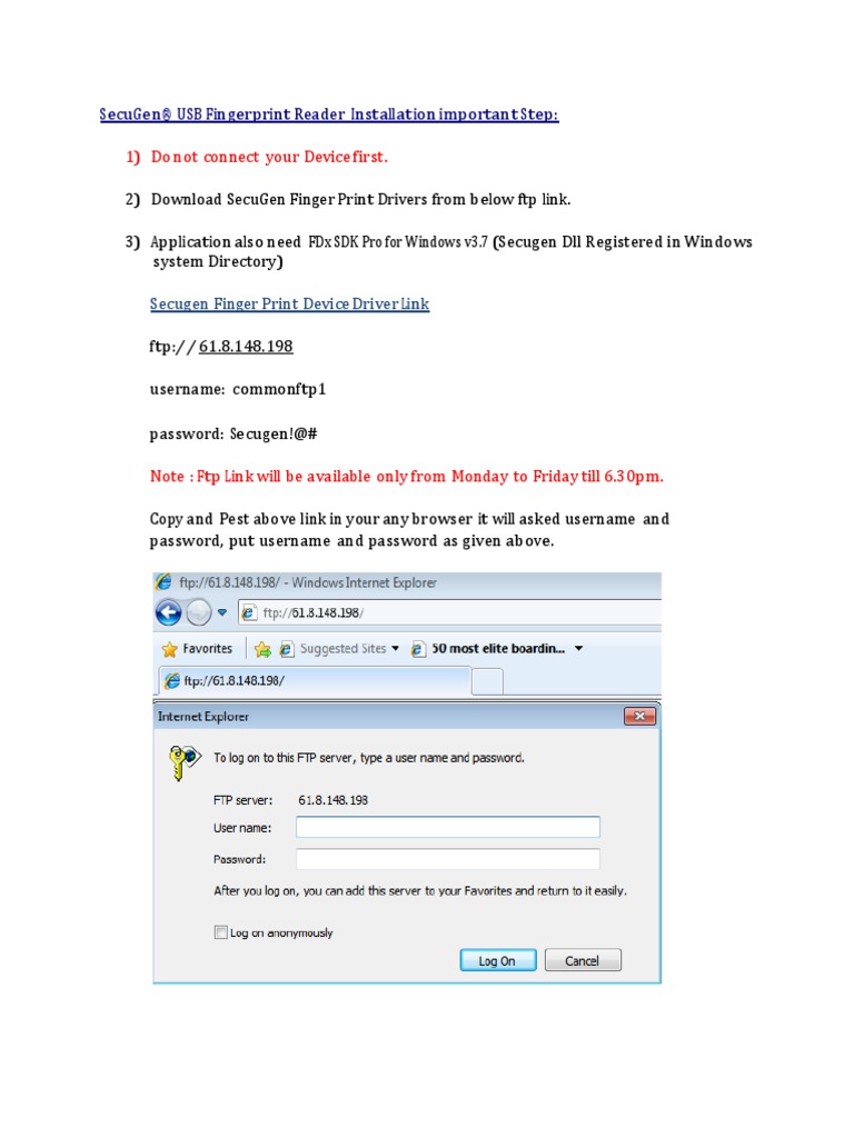 2) Download SecuGen Finger Print Drivers from below ftp link.