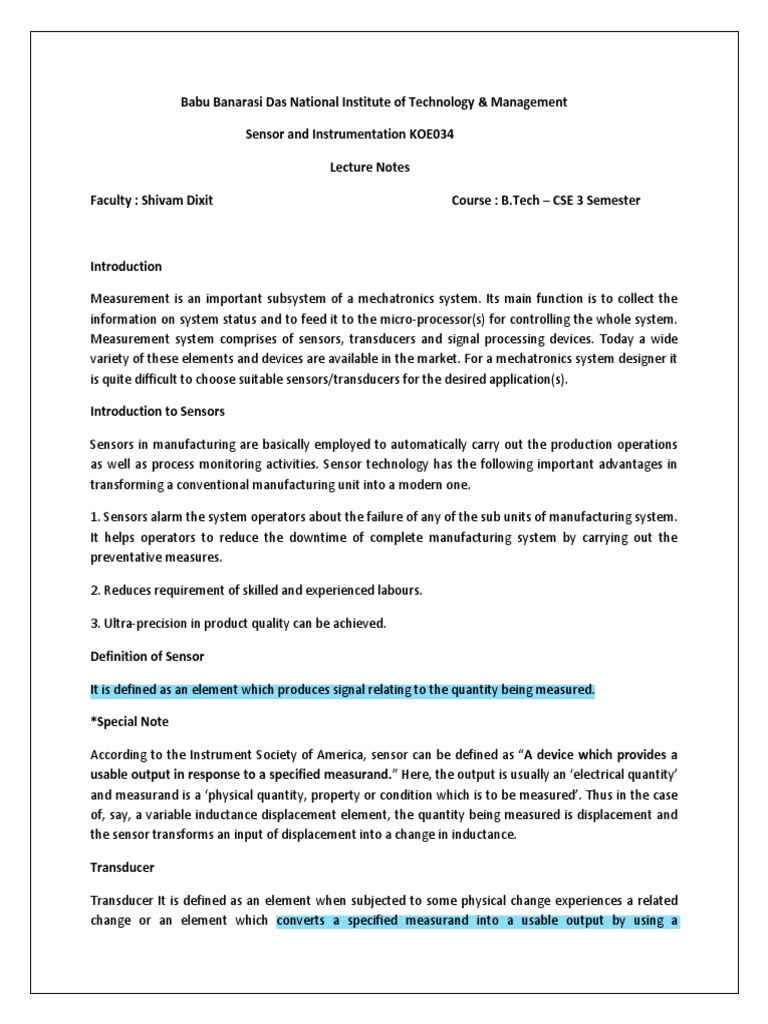 Transducers or measurement systems are not perfect systems. Mechatronics design engineer must