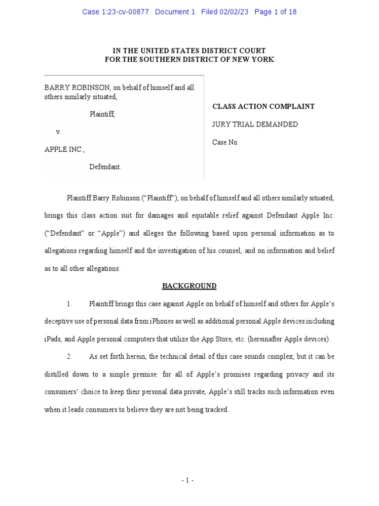 1. Plaintiff brings this case against Apple on behalf of himself and others for Apple’s