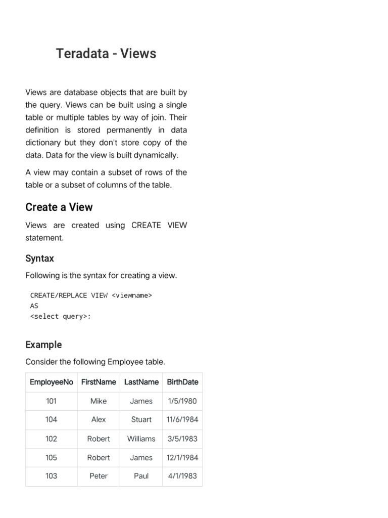 Teradata - Views