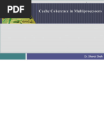 and protocol are summarized in Table 4.3. Example 2 Consider a bus-based shared memory with two processors P and Q as shown in Figure 4.6. Let us see how the cache coherence is maintained using WriteInvalidate Write-Through protocol. Assume that that X in memory was originally set to 5 and the following operations were performed in the order given: (1) P reads X; (2) Q reads X; (3) Q updates X; (4) Q reads X; (5) Q updates X; (6) P updates X; (7) Q reads X. Table 4.4 shows the contents of memory and the