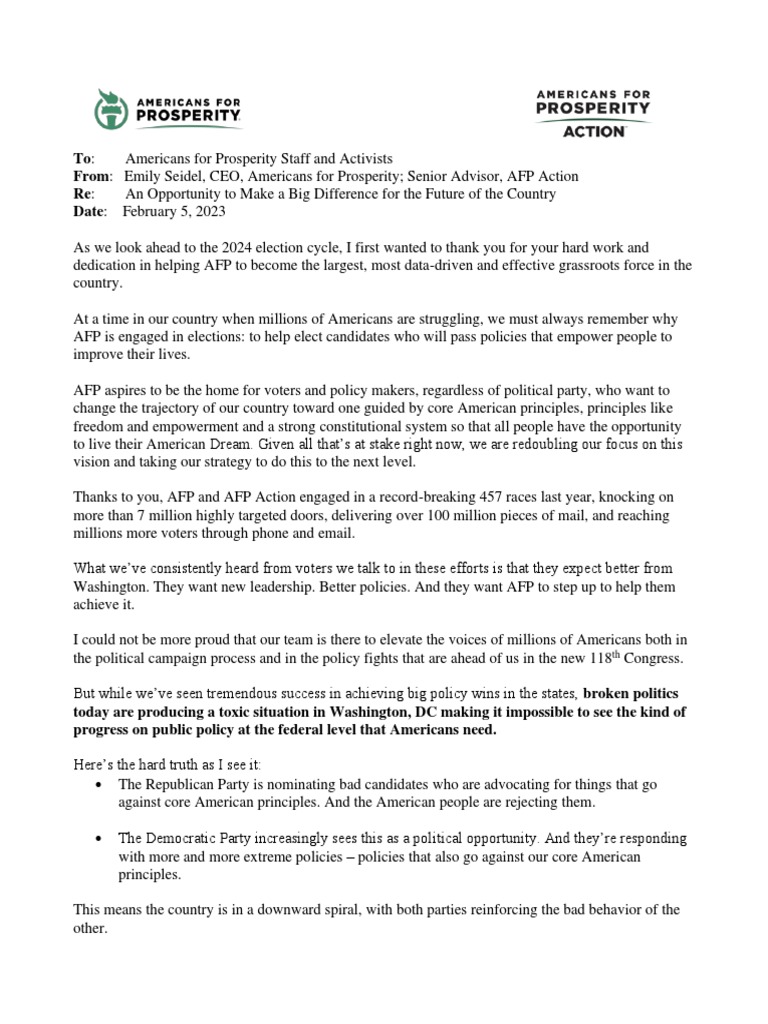 From: Emily Seidel, CEO, Americans for Prosperity; Senior Advisor, AFP Action