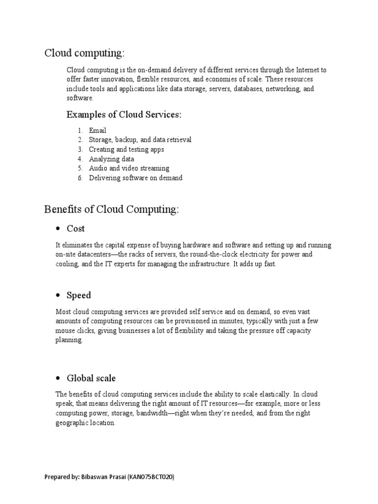 Cloud computing is the on-demand delivery of different services through the Internet to