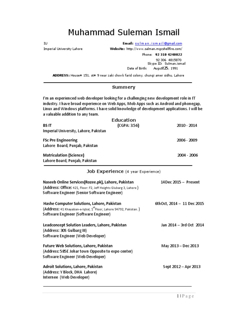 Naseeb Online Services(Rozee.pk), Lahore, Pakistan 14Dec 2015 – Present