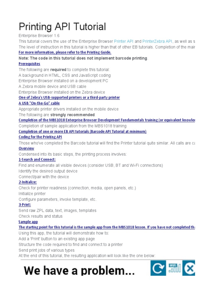This tutorial covers the use of the Enterprise Browser Printer API and PrinterZebra API, as well as some of the typic