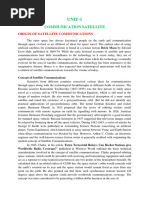 technology has been responsive to the imaginative dreams. Hence it is also expected that technological innovations will lead the evolution of satellite communications towards the visions of today. CONCEPT OF SATELLITE COMMUNICATIONS Scientists from different countries conceived various ideas for communications through space along with the technological breakthroughs in different fields of science. The Russian scientist Konstantin Tsiolkovsky (1857-1935) was the first person to study space travel as a science and in 1879 formulated his Rocket Equation, which is still used in the design of modern rockets. He also wrote the first theoretical description of a man- made satellite and noted the existence of a geosynchronous orbit. But he did not identify any practical applications of geosynchronous orbit. The noted German Scientist and rocket expert, Hermann Oberth, in 1923 proposed that the crews of orbiting rockets could communicate with remote regions on earth by signaling with mirrors. In 1928, Austrian Scientist Hermann Noordung suggested that the geostationary orbit might be a good location for manned space vehicle. Russian Scientists in 1937 suggested that television images could be relayed by bouncing them off the space vehicles. During 1942-1943, a series of articles by George O Smith were published in Astounding Science Fictions concerning an artificial planet, Venus Equilateral, which functioned as relay station between Venus and Earth Station when direct communication was blocked by Sun. However, Arthur C. Clarke, an electronic engineer and the well-known science fiction writer is generally credited with originating the modern concept of Satellite Communications. In 1945, Clarke, in his article `Extra Terrestrial Relays: Can Rocket Stations give Worldwide Radio Coverage? published in Wireless World outlined the basic technical considerations involved in the concept of satellite communications. Clarke proposed orbiting space stations, which could be provided with receiving and transmitting equipment and could act as a repeater to relay transmission between any two points of the hemisphere beneath. He calculated that at an orbital radius of 42,000 km. the space stations orbit would coincide with the earths rotation on its axis and the space station would remain fixed as seen from any point on the earth. He also pointed out that three such synchronous stations located 120 degrees apart above the equator could provide worldwide communications coverage. The concept was later considered to be generating a billion dollar business in the area of communications. However, Clarke did not patent the most commercially viable idea of twentieth century as he thought satellites would not be technically and economically viable until the next century.