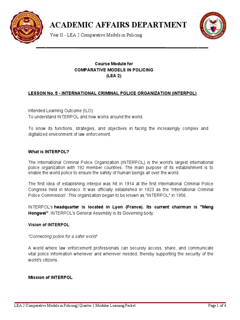LEA 2 Comparative Models in Policing | Quarter 1 Modular Learning Packet Page 2 of 4