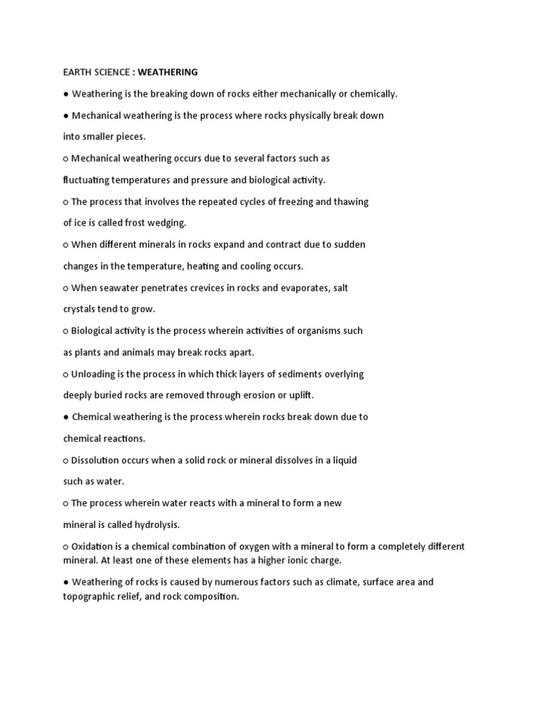 ● Weathering is the breaking down of rocks either mechanically or chemically.