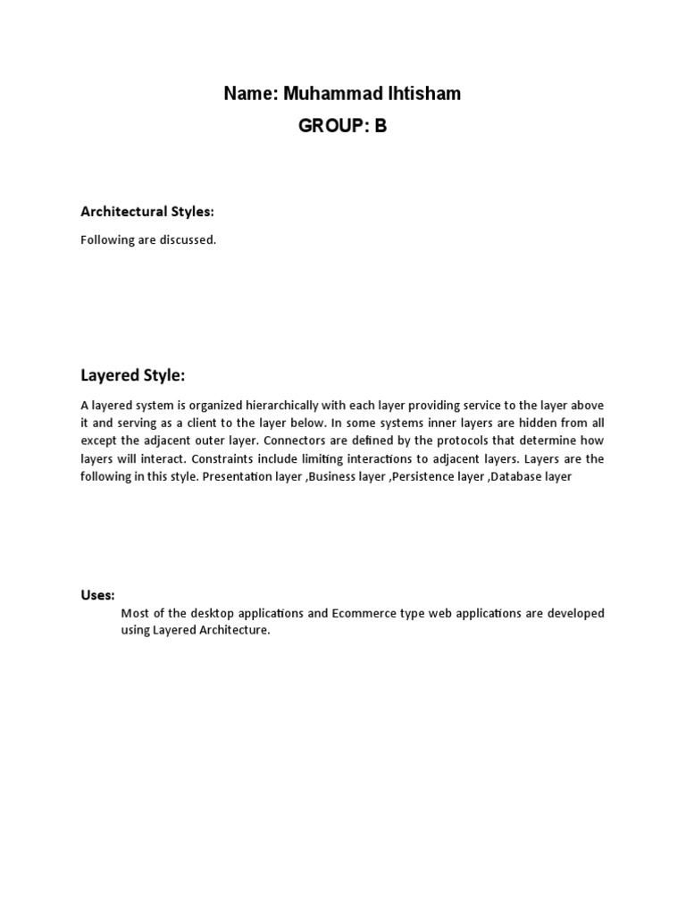 following in this style. Presentation layer ,Business layer ,Persistence layer ,Database layer