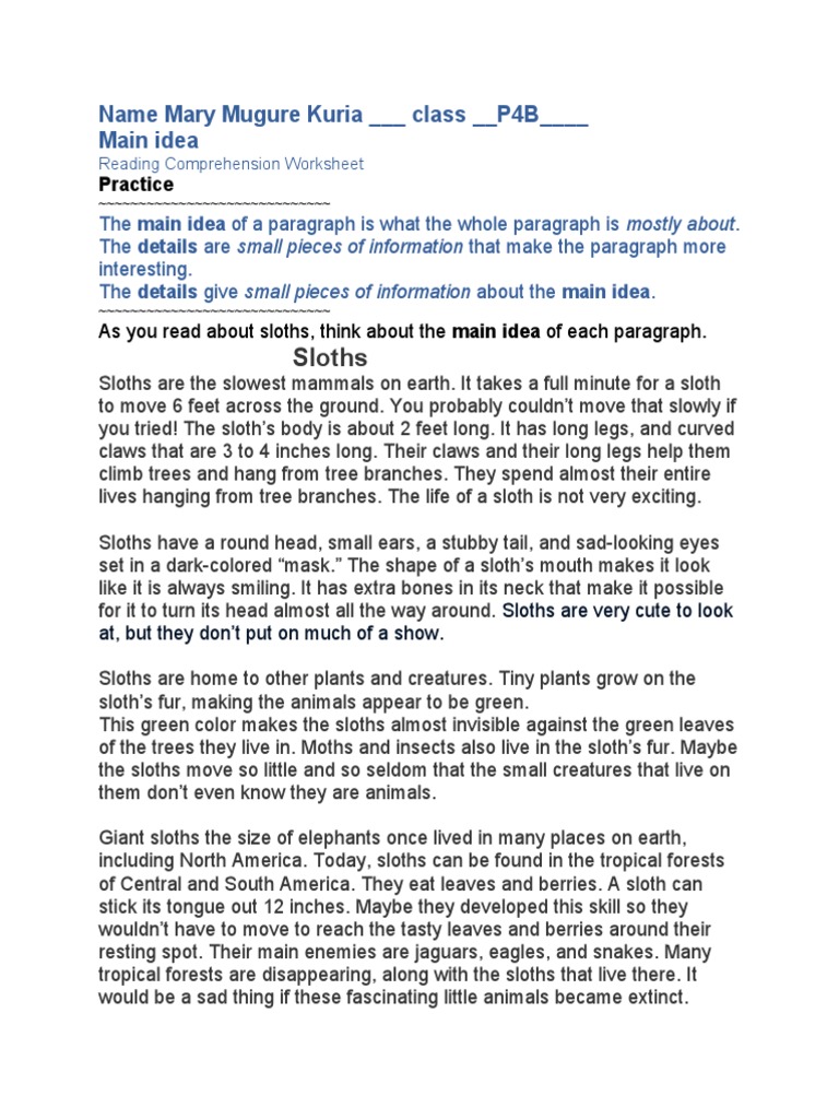 The main idea of a paragraph is what the whole paragraph is mostly about.