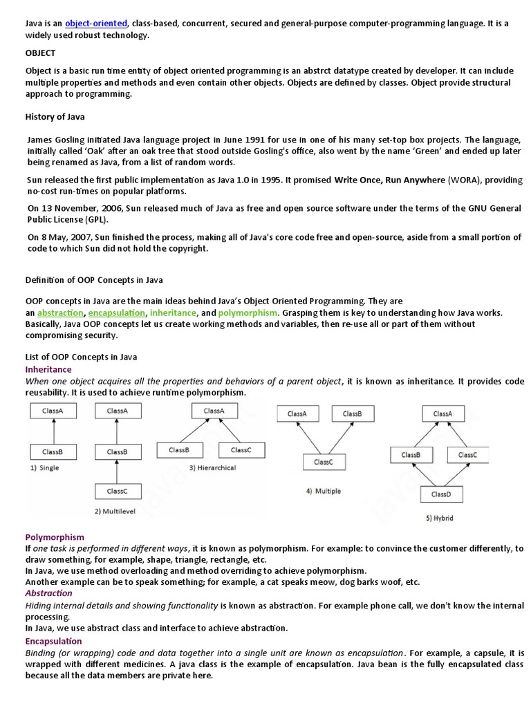 List of OOP Concepts in Java