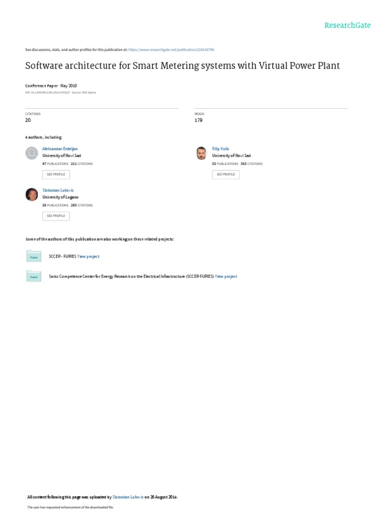 VUKMIROVIC et al : A NOVEL SOFTWARE ARCHITECTURE FOR SMART METERING SYSTEMS 941