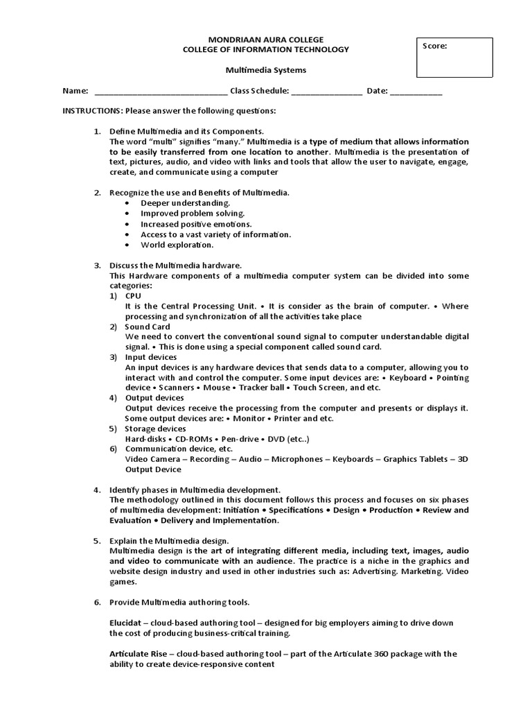 to be easily transferred from one location to another. Multimedia is the presentation of