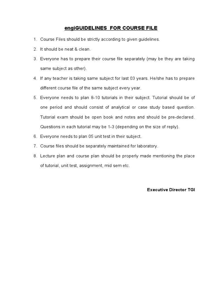 engiGUIDELINES FOR COURSE FILE