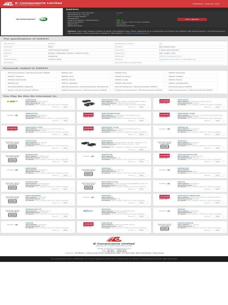 DAP041 100% New Original 2794pcs in Stock, Find DAP041 Price, Stock, datasheet at IC Components Ltd Online, buy DAP041 AMI Semiconductor / ON Semiconductor