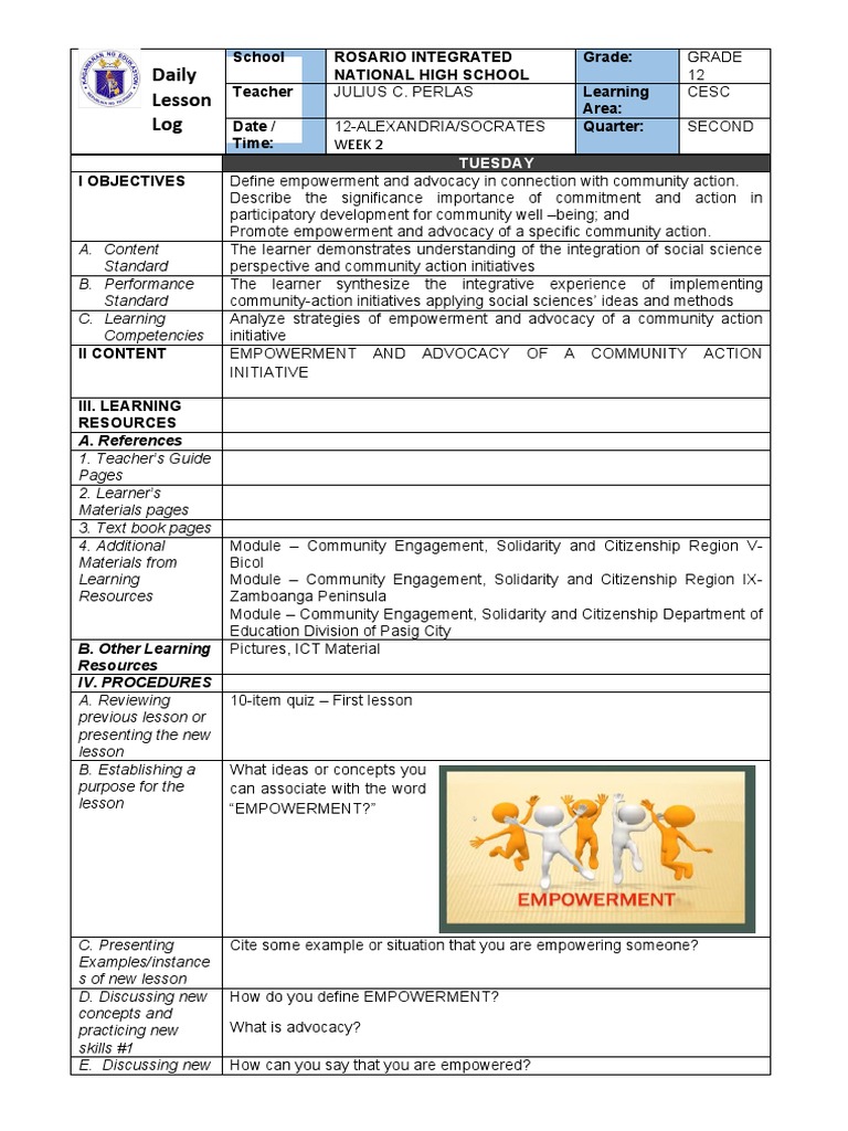 I OBJECTIVES Define empowerment and advocacy in connection with community action.