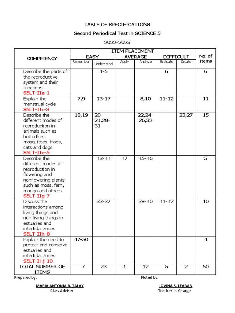 SECOND PERIODICAL TEST IN SCIENCE 5