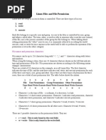 Directories are easily identified in the listing by the first character of the first column, which here shows a d. The significance of the attributes of a directory differs a good deal from an ordinary file. To see the attributes of a directory rather than the files contained in it, use ls ld with the directory name. Note that simply using ls d will not list all subdirectories in the current directory. Strange though it may seem, ls has no option to list only directories. File Ownership When you create a file, you become its owner. Every owner is attached to a group owner. Several users may belong to a single group, but the privileges of the group are set by the owner of the file and not by the group members. When the system administrator creates a user account, he has to assign these parameters to the user: The user-id (UID) both its name and numeric representation The group-id (GID) both its name and numeric representation File Permissions UNIX follows a three-tiered file protection system that determines a files access rights. It is displayed in the following format: Filetype owner (rwx) groupowner (rwx) others (rwx) For Example: -rwxr-xr-- 1 kumar metal 20500 may 10 19:21 chap02 rwx owner/user r-x group owner r-others