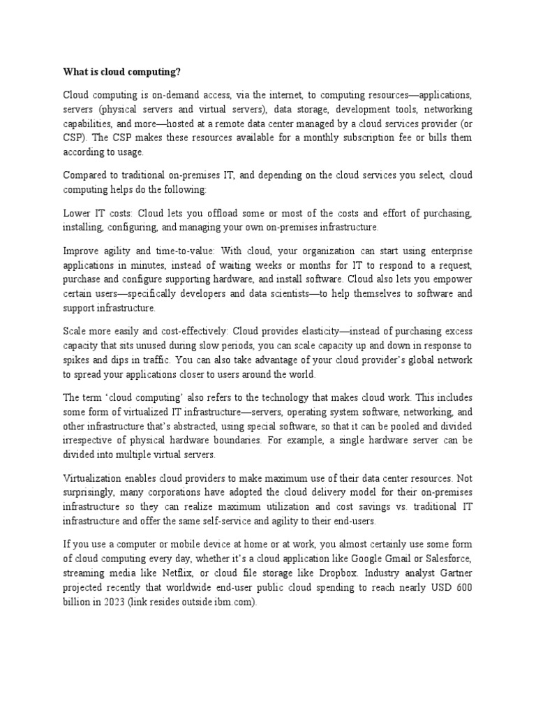 Compared to traditional on-premises IT, and depending on the cloud services you select, cloud