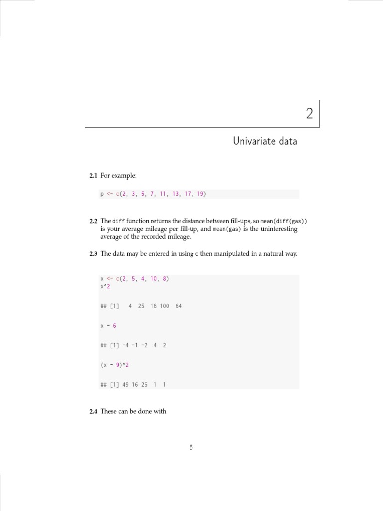 2.3 The data may be entered in using c then manipulated in a natural way.