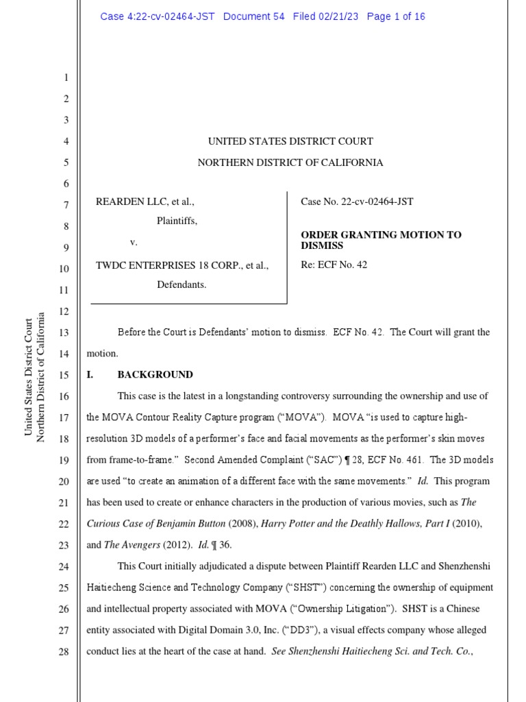 21 Rearden LLC v. Walt Disney Company, 293 F. Supp. 3d. 963, 967-68 (N.D. Cal. 2018).